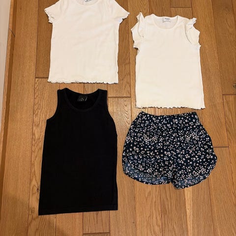 Lindex , HM lasten vaatesetti sopii 5-7v. tytöille. Setti sisältää useita vaatekappaleita :3 mekkoa ja 2 hupparia, on erilaisia kuoseja ja värejä, kuten kukkakuviot ja eläinaiheet. Materiaalit vaihtelevat, ja vaatteet sopivat arkeen ja vapaa-aikaan.