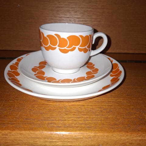 Myyn Arabian kahvikupin ja tassin. Tämä on Olga Osolin suunnittelemaa Oliivi-sarjaa. Lasitus ehjä. Lähetys toridiilinä. Myös nouto.