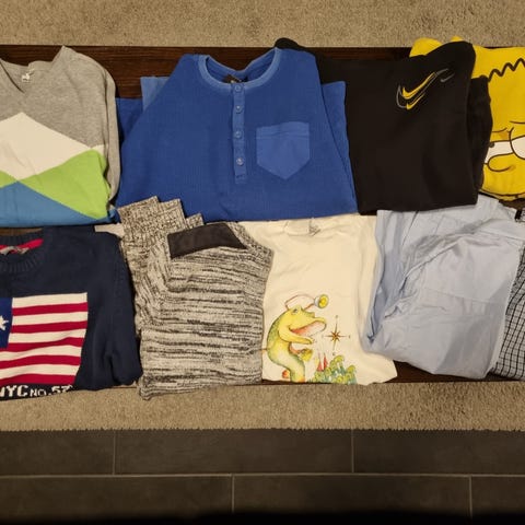 Kaksi hupparia, kahdet legginsit, yhdet collegehousut. Kaikki ehjiä ja siistejä. Useita merkkejä.