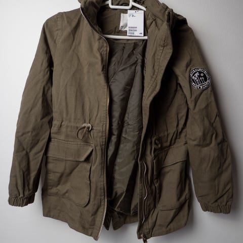 Uusi H&M kuoritakki koko 146 (10-11). Veden-ja tuulenpitävä, hengittävä. Vetoketjulliset taskut. Heijastimet. Kangasvuori. Kainalo-kainalo 45cm. Olka-helma 56cm.