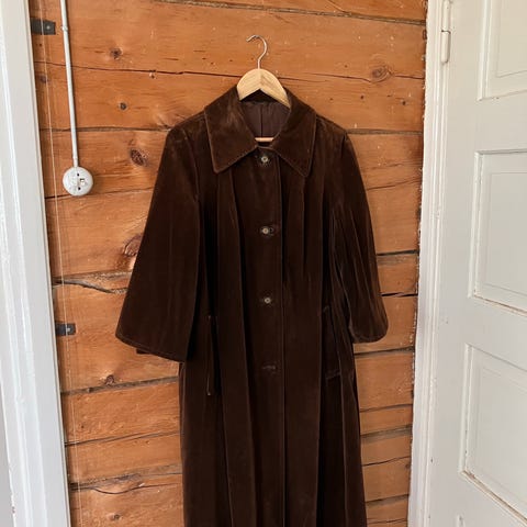 Unisex mallinen pidempi samettitakki. 100%puuvillaa, vuori polyesteriä. Ainoa vika on että yksi napeista puuttuu (4napinläveä, 3nappia). Taskut ja vuori ehjät, todella siistissä ja hyvässä kunnossa.