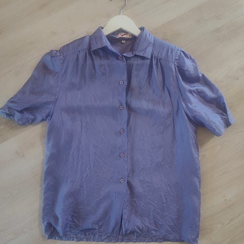 Custommade-paita. Materiaali 100 % silkkiä. Koko 36. Leveys kainalosta kainaloon noin 46 cm. Pituus niskasta helmaan noin 65 cm.