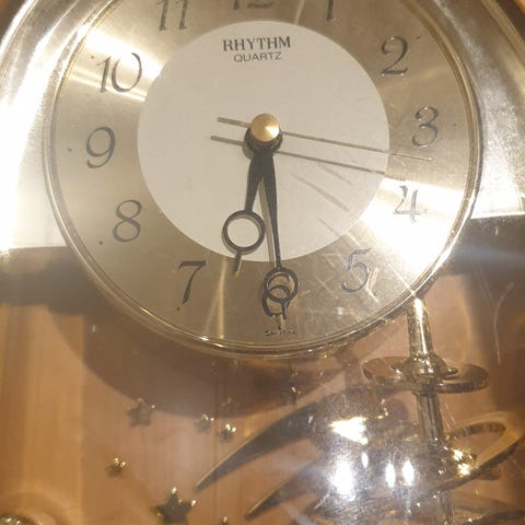 Erinomaisessa kunnossa oleva Rhythm pöytäkello. Patterinvaihdolla aikaan.