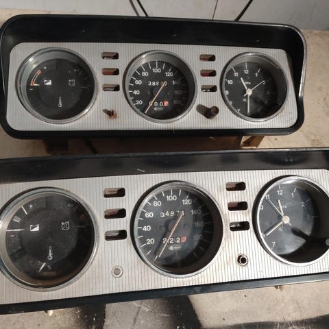 Peugeot 404 avec montre mittaristo, en tie vuodesta.