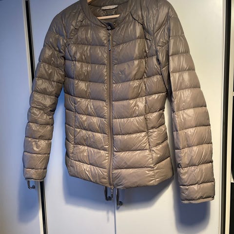 Ihana beigenharmaa Liujon untuvatakki tarjolla seuraavalle omistajalle. Pituus noin 85 cm, kainalo-kainalo 45 cm. Takki on tosi hyvässä kunnossa ja myyn pois koska tämä on itselle hieman tiukka. Koko on italialainen 46, vastaa kokoa 40. Takissa ei ole mitään käytönjälkiä. Takissa on kaunis ja suojaava kaulus kylmiin päiviin. Ja vahva vetoketju, joka aukeaa myös alhaalta ylöspäin. Nouto Pohjois-Tapiola tai lähetys
