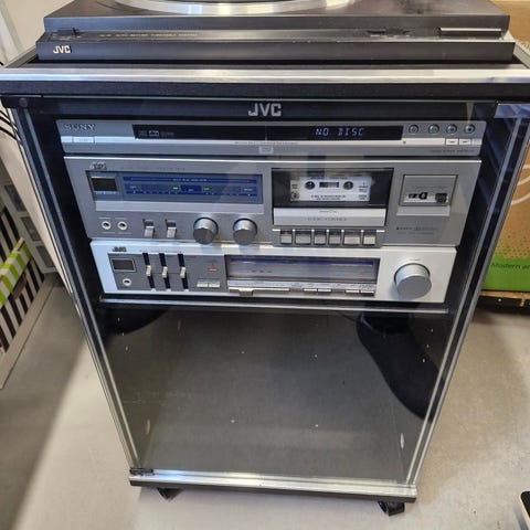 JVC stereoäänentoistojärjestelmä sisältää levysoittimen, kasettisoittimen, CD-soittimen ja erilliset kaiuttimet. Laitteet ovat mustia ja soveltuvat kotikäyttöön musiikin toistamiseen eri formaateista. Mukaan kaupan tekijäiseksi Dingon levysoitin levy!
