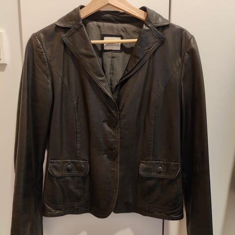 Myydään ylimääräiseksi jäänyttä Armani ruskea nahkatakkia miesten kokoon M. Takissa on neljä etutaskua, pystykorkea kaulus ja vetoketjullinen etumallinen sulkeminen. Takki on valmistettu nahasta