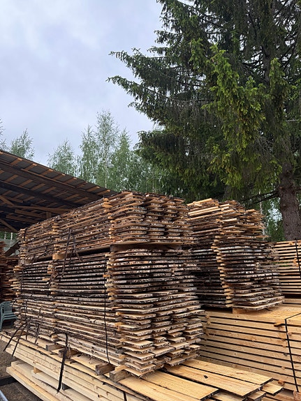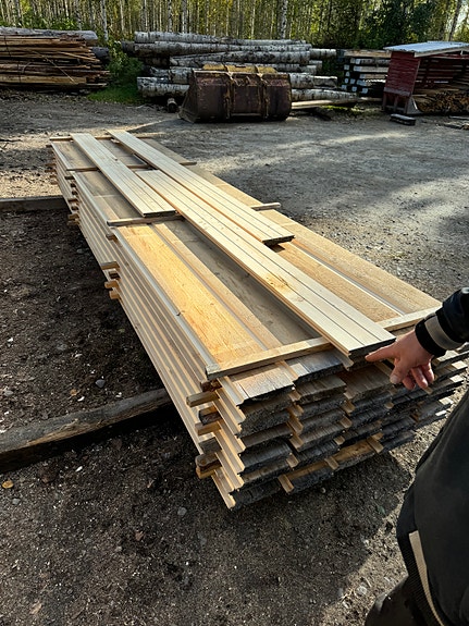 150-200 vuotiaista männyistä tuppeensahattuja lankkuja paksuudet 75mm ja 50mm. Leveydet 20-33cm välillä.