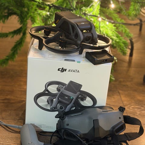 Myynnissä 3 lähes uutta DJI Avata -akkua sekä 4-paikkainen latausasema akuille.