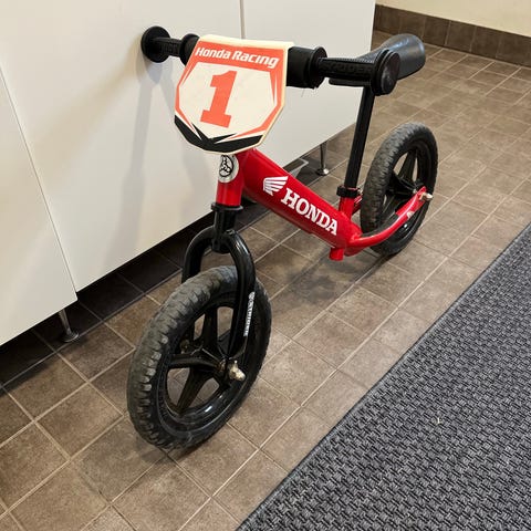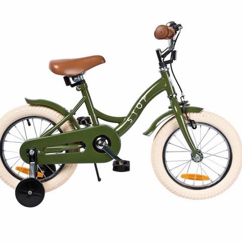 Keltainen Strider 14X lasten 2 in 1 potkupyörä / polkupyörä. Polkimet otettavissa pois, jolloin toimii potkupyöränä. Pyörässä on 14 tuuman renkaat. Satula on hieman kulunut, pehmusteessa kolo (kts. kuva).