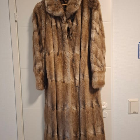 Myydään ruskea aito piisami turkki, vintage. Hihasta kainaloon 43 cm ja olkapäästä alas helmaan 97 cm. Nouto tai postitus lisämaksullinen.