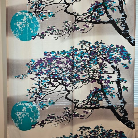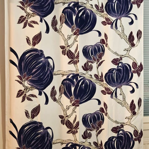 Myydään tarpeettomana Tanja Orsjoen Vallilalle suunnittelemat kauniit Rosanna- sivuverhot 2kpl.
