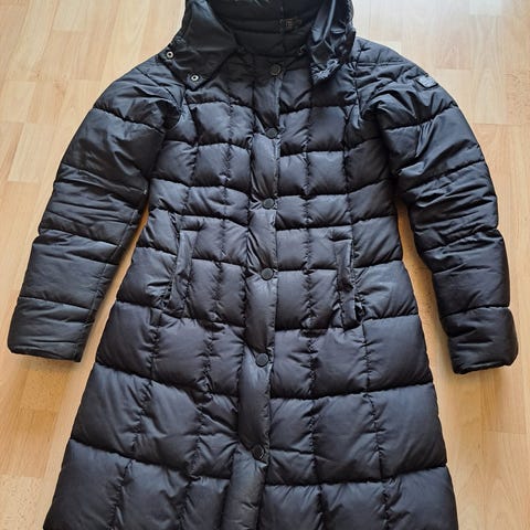 Marco Polo untuvatakki, väriltään tumman harmaa, lähes musta. Koko 34 (XS), menee myös S-koolle. Yhden talven käytetty, hyvä kuntoinen edelleen. Muhkea ja lämmin takki.