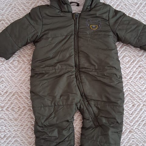Siisti ja ehjä vanuhaalari vauvalle kokoa 62-68. Ainoa miinus on pieni nukka ranteiden resoreissa. Hyvä nyt syksyn ja talven leudoille keleille. #välikausi #haalari #vauva #kevät #syksy