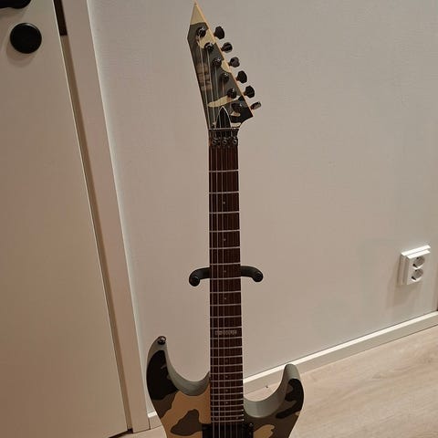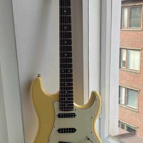Modified with Seymour Duncan hot rodded humbucker pick ups, and comes with an adaptor for regular strings as well as double ball strings adaptor, a soft bag and tremolo bar