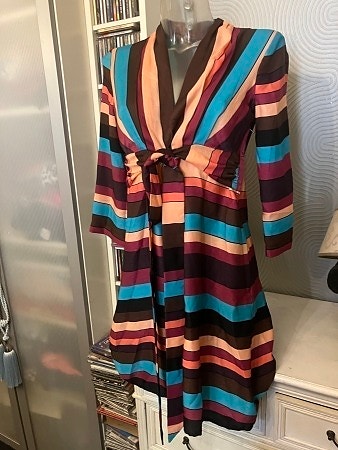 Uutta kotia etsii kuvan upea joustavaa puuvillaa oleva ompelimo Tiitun valmistama mekko pitsikoristeisin taskuin helmassa