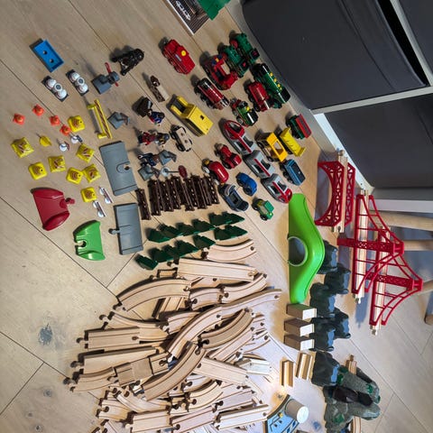 7312350330977 BRIO Cargo Railway Deluxe Set on 54-osainen puisista kiskoista ja ajoneuvoista koostuva lastaussetti, jossa on mm. akkuvetoisia junia, kolme magneettikuvaa ja kuorma-auton purku, varasto/laatikko, silta ja liikennevalot � suunniteltu 3+ vuotiaille ja yhteensopiva muiden BRIO-junaratojen kanssa
