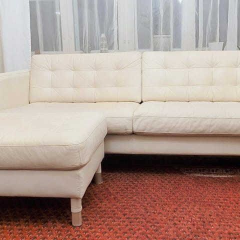 Hyväkuntoinen, 4 vuotta vanha Ikean nahkasohva. Ollut vain homeettomassa, hajusteettomassa uudessa kodissa.