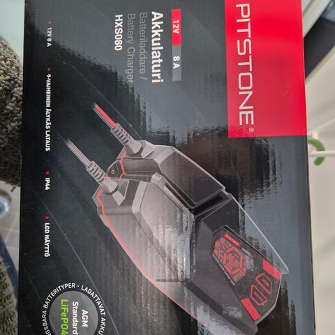Pitstone PSD004 Akku- ja paristolaturi, joka sopii 7.1-14.4 V akuille. Laturissa on LCD-näyttö ja se on IP65-luokiteltu, joten se kestää pölyä ja roiskeita. Laturin syöttöjännite on 220-240 V, 50 Hz, 0.75 A (max).