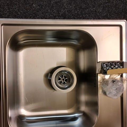 Käsienpesuallas automaattihanalla. Seinäkiinnitys.
