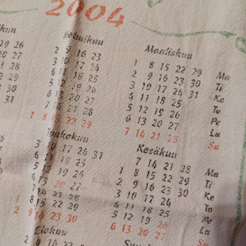 ostan kalenteripyyhkeitä vuosi 1962 ja sitä vanhempia.