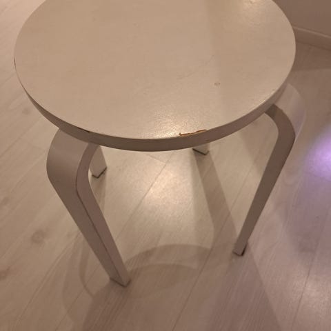 Myydään tummanvärinen puinen jakkara. Ollut käytössä sivupöytänä mutta voinee käyttää myös vaikka eteisen tuolina. Korkeus 44cm ja päällysosan leveys 36cm.