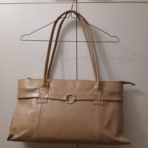 Vanha laukku, A4 tai läppäri mahtuu hyvin sisälle. Vetoketju ei toimi.