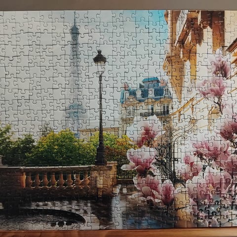 Ravensburger April Cottage palapeli, jossa on 1000 palaa. Kaikki palat tallessa.