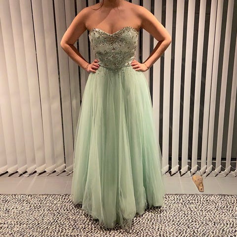 Myydään näyttävä tummansininen mekko hopeisilla yksityiskohdilla vanhojentansseihin tai muihin iltapukujuhliin. Mekko on hyvässä kunnossa ja se on käytön jälkeen pesetetty pesulassa.