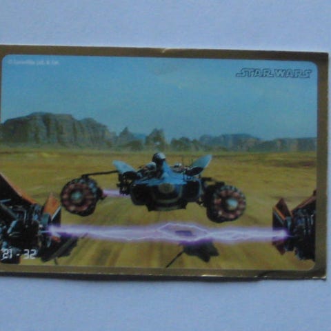 Star Wars Star Wars Trilogy Collection hologrammikortti, jossa on sinisävyinen hologrammikuva Star Wars -aiheisesta avaruusaluksesta. Kortti on suorakulmion muotoinen ja siinä näkyy yksityiskohtainen kuva sekä etu- että takapuolella.