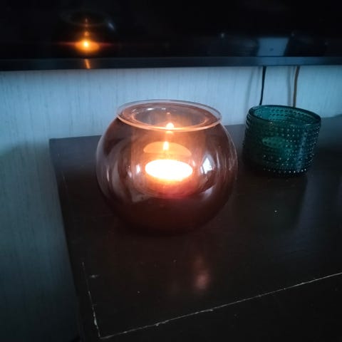 Kaksi somistetta korkeampi 19cm ja matalampi 16 cm. Tuikut mahtuu ja votivikynttilät. Suuaukko 5 cm. Yht.