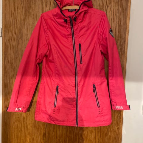 H&M ruosteenpunainen vuorittamatton takki. Materiaali polyester/puuvilla. Olkapäillä mansetit, hihansuissa solmittavat nauhat. Takissa oikeat taskut. Vyötäröllä irroitettava vyö. Koko 38. Mitat: kai-kai 56cm, lantion ympärys 124cm ja takin takapituus 120cm. En käytä toridiiliä, mutta postitus onnistuu.