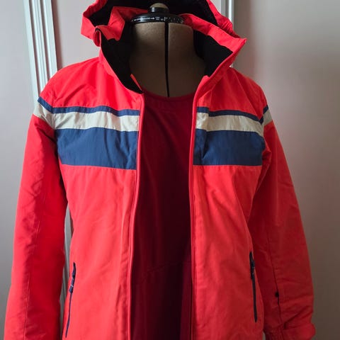 Pari pientä tahraa havaittu kuvanottohetkellä, toinen etuosan valkoisessa kohdassa ja toinen vetoketjun vieressä helmassa. Yleisilmeeltään kuitenkin vielä oikein siisti takki.