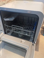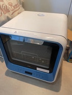 Toimii hyvin, ei ollut enää tilaa vain tälle. Pesukoneeseen kadetaan vettä ja likainen vesi tulee poistoletkusta ulos. Sopii vaikka pieneen kämppään tai mökille.
