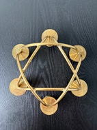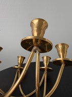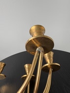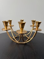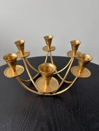 Vanha ja tyylikäs messinkinen kynttilänjalka. Korkeus 13cm ja leveys 26cm. Saumakohdissa iän tuomaa jälkeä, jotka näkyvät kuvissa.