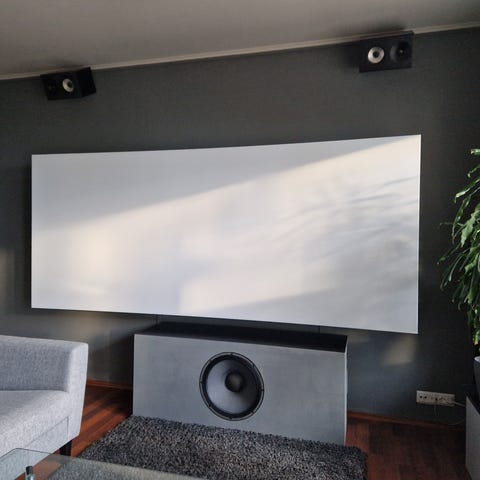 Kankaan koko on 340x145cm, joka vastaa noin 150 tuuman kokoista kangasta kuvasuhteella 2.35:1.