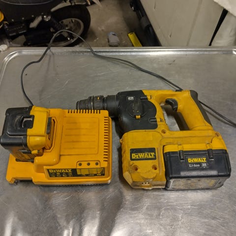 DeWalt Akku porakone laturi ja kaksi akkua mukaan toinen akku ei toimi. Muutamia kärkiä mukaan ja kantolaukku/salkku tuotehan ei ole uusi! Postitus onnistuu ostajan piikkiin