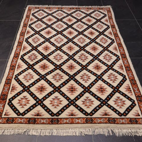 Hieno ja räiskyvä Marokkolainen aito villamatto.