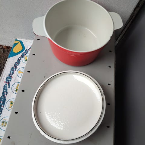 vanha, ruosteinen valurautapata. Kuvissa mitat/koko. Huom padan kyljessä pore/halkeama. Hinta 7e
