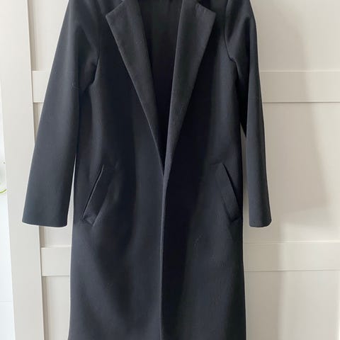 Bouklee-tyyppinen paksuhko kangas. Takki on kuvista poiketen ihan musta. Mitat ol-hel 82. Leveys 82, rinnanympärys 106, hihan pituus 62. Nouto tai postitus.