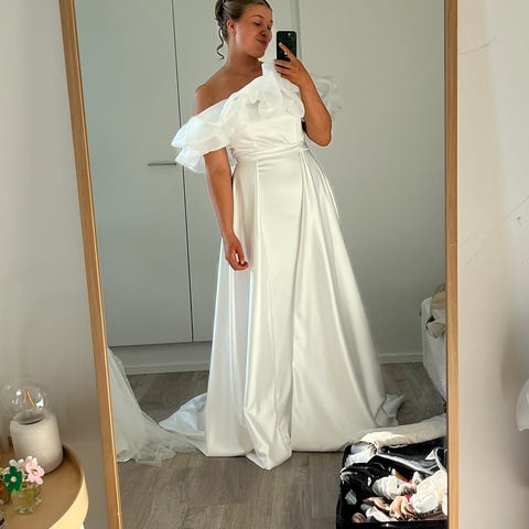 Takana olevan nyörityksen avulla hääpukua pystyy kuitenkin säätään useamman kokoiseksi.