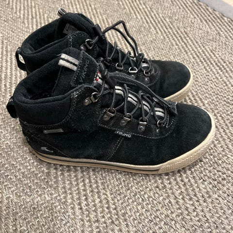 Myydään mustat vedenpitävät ja lämpimät Viking Eagle mid gtx talvilenkkarit koossa 35. sisäpohjallisen mitta n. 23,4cm. nimikoidut, ehjät ja puhtaat. siistikuntoiset käytetyt mokkapintaiset talvilenkkarit syksyyn ja talveen. ehjät kantapäät. tarrakiinnitys pysyy kiinni, mutta ei ole enää uutuuden napakka. mokkapinnassa jo haalistumaa. sisävuoressa tyypillistä nyppyä.
