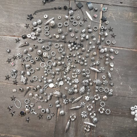 Avaamaton purkillinen koristeraetta hopean väristä, painava purkki rakeita.