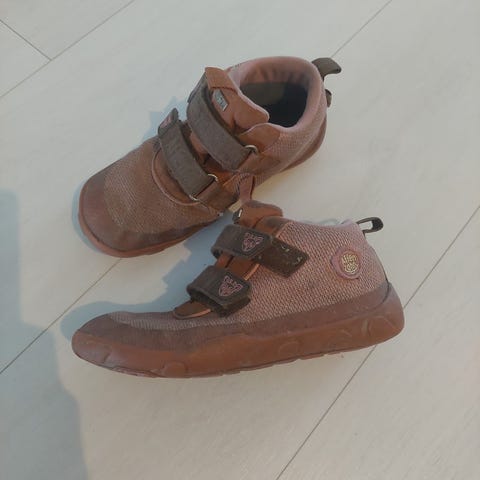 Viime syksynä/keväällä käytössä olleet välikausikengät. Pohjan oranssissa värissä pieniä kulumia, muuten hyvä kunto.