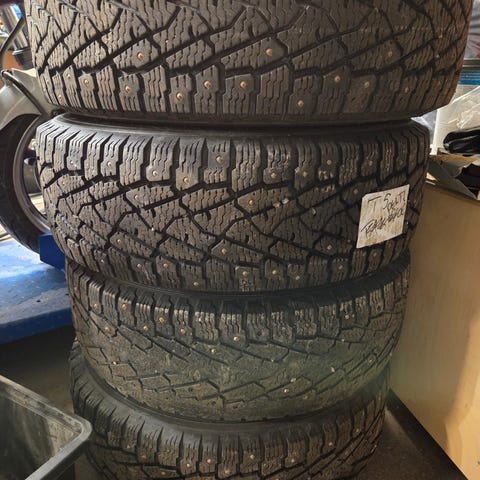 Myydään neljä kpl Volkswagen Transporterin talvirenkaita. Vain päällimmäisessä renkaassa tuo erikoisvanne.