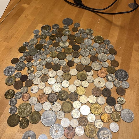 Tässä laatikollinen ulkomaalaisia kolikoita ja seteleitä seuraavalle keräilijälle. Monesta eri maasta kaikenlaisia ja kaikenikäisiä kolikoita. Myyn kaikki kerralla. Nouto Kuopio tai Toridiili onnistuu myös.