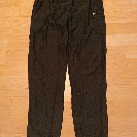 Tuulikangasta olevat housut, sisäkangas verkkokangasta. Muuten kuin ehjät, toisessa polvessa pieni harmaa kohta.