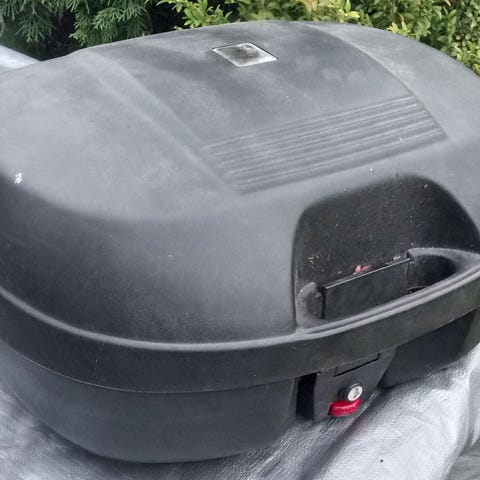 GIVI-merkkinen moottoripyörän perälaukku ja kuvien mukaiset telineet. Lisätietoja kysymällä.