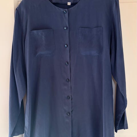 Täysin käyttämätön tummansininen silkkipusero, one size. Alla joustava viskoositoppi. Malliltaan leveä ja suora, hihat laskeutuvat noin kyynärpäähän. Kokonaisleveys 105 cm, trikootoppi 55 cm ja joustaa 70 cm asti. Sopii siis todella monen kokoiselle. Päällinen 100 % silkki ja vuori viskoosi elastaania. Aivan käyttämätön. Postitus onnistuu.