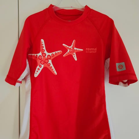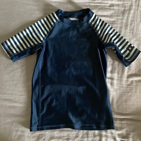 Reiman uv50-paita koossa 116. Hyväkuntoinen ja pehmeä. Toisen hihan takapuolella pieni pistemäistä tahraa joka ei lähtenyt peruspesussa, näistä kuva.
